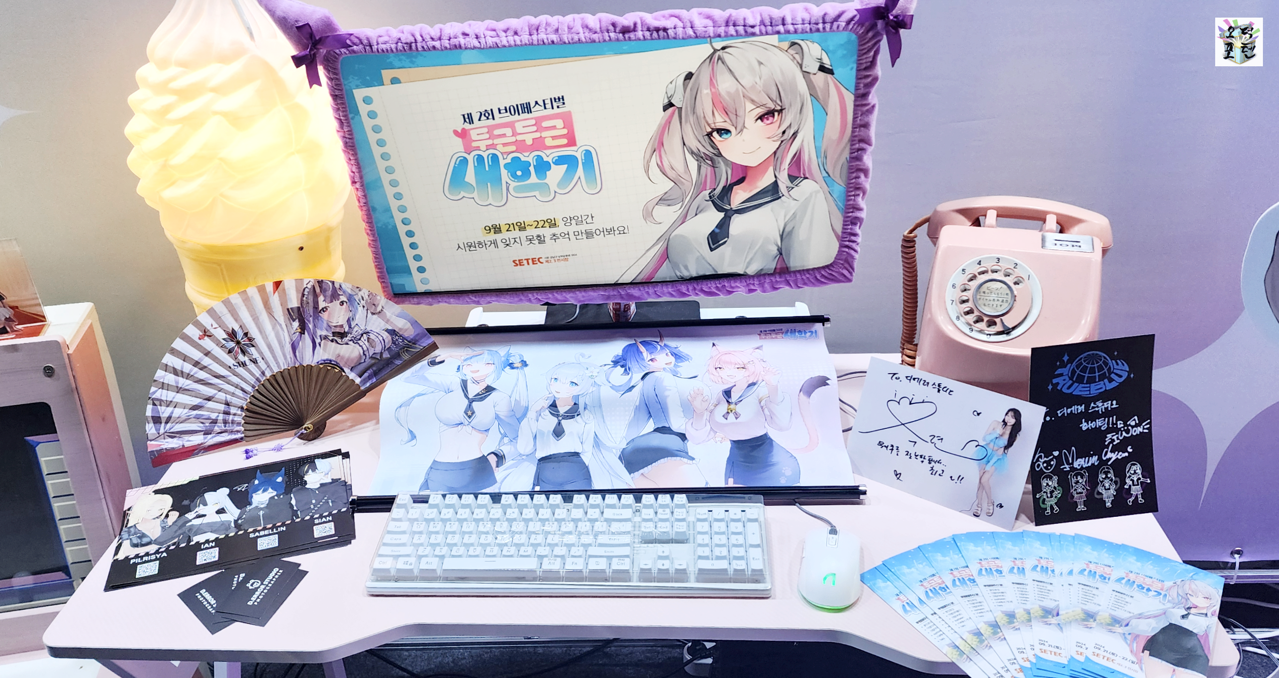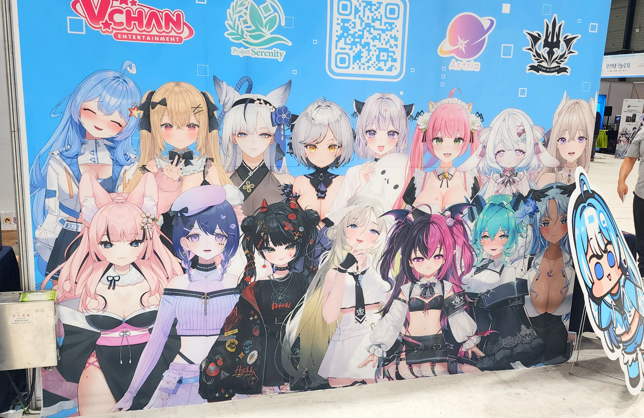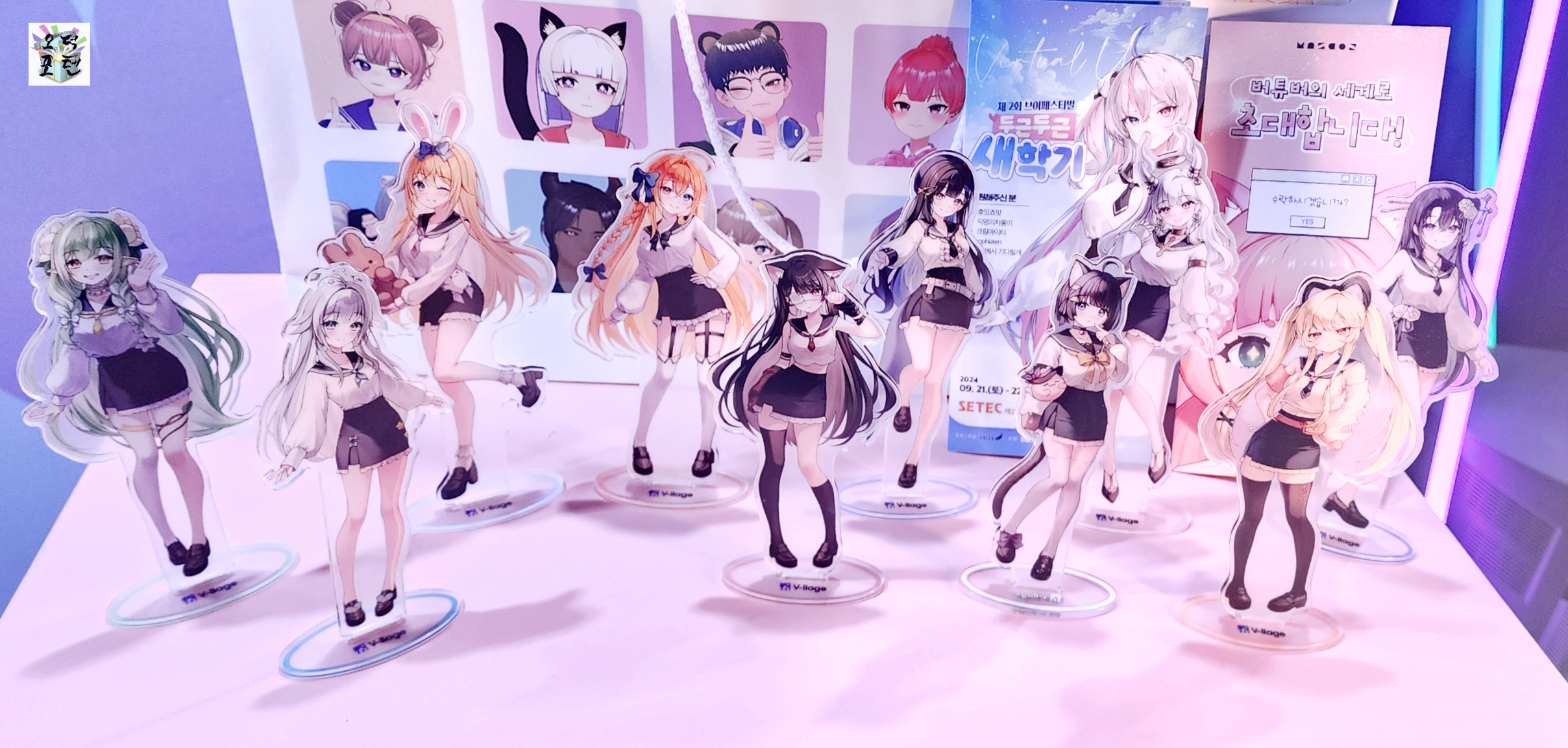 교복 테마로 맞춘 참여 버튜버들의 전시물도 눈에 띱니다.