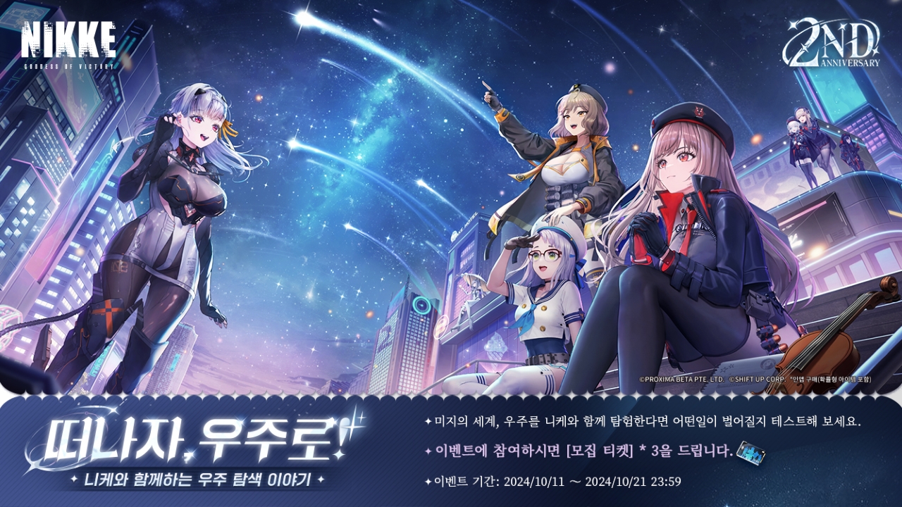 또한 2주년 특별 방송을 기다리는 유저들의 기대를 충족시키기 위해 오는 21일까지 ‘떠나자, 우주로! 니케와 함께하는 우주 탐색 이야기’ MBTI(Myers-Briggs Type Indicator) 테스트 이벤트도 실시한다.