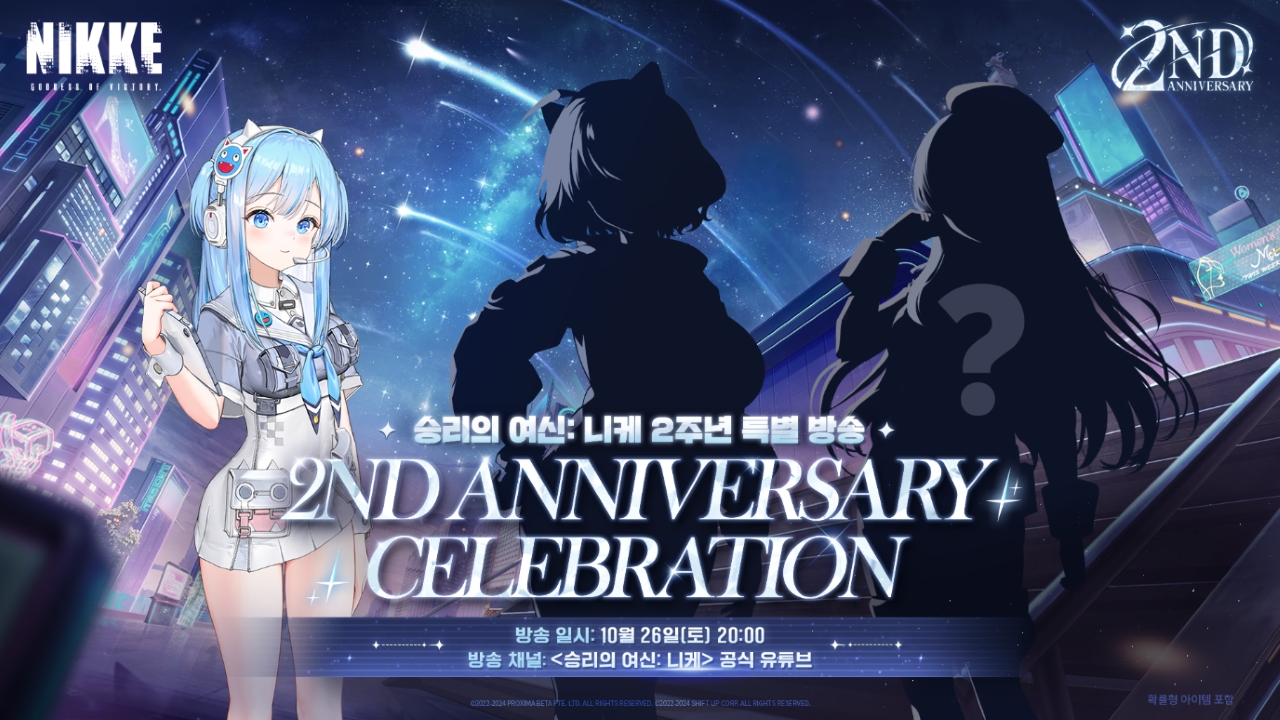 ‘승리의 여신: 니케’는 오는 11월 4일 정식 출시 2주년을 맞아 10월 26일 오후 8시에 공식 유튜브 채널을 통해 2주년 특별 방송을 진행한다. 이번 특별 방송을 기다리는 유저는 오늘(11일)부터 사전 알림 설정을 통해 방송 시간 알림을 받아볼 수 있다.