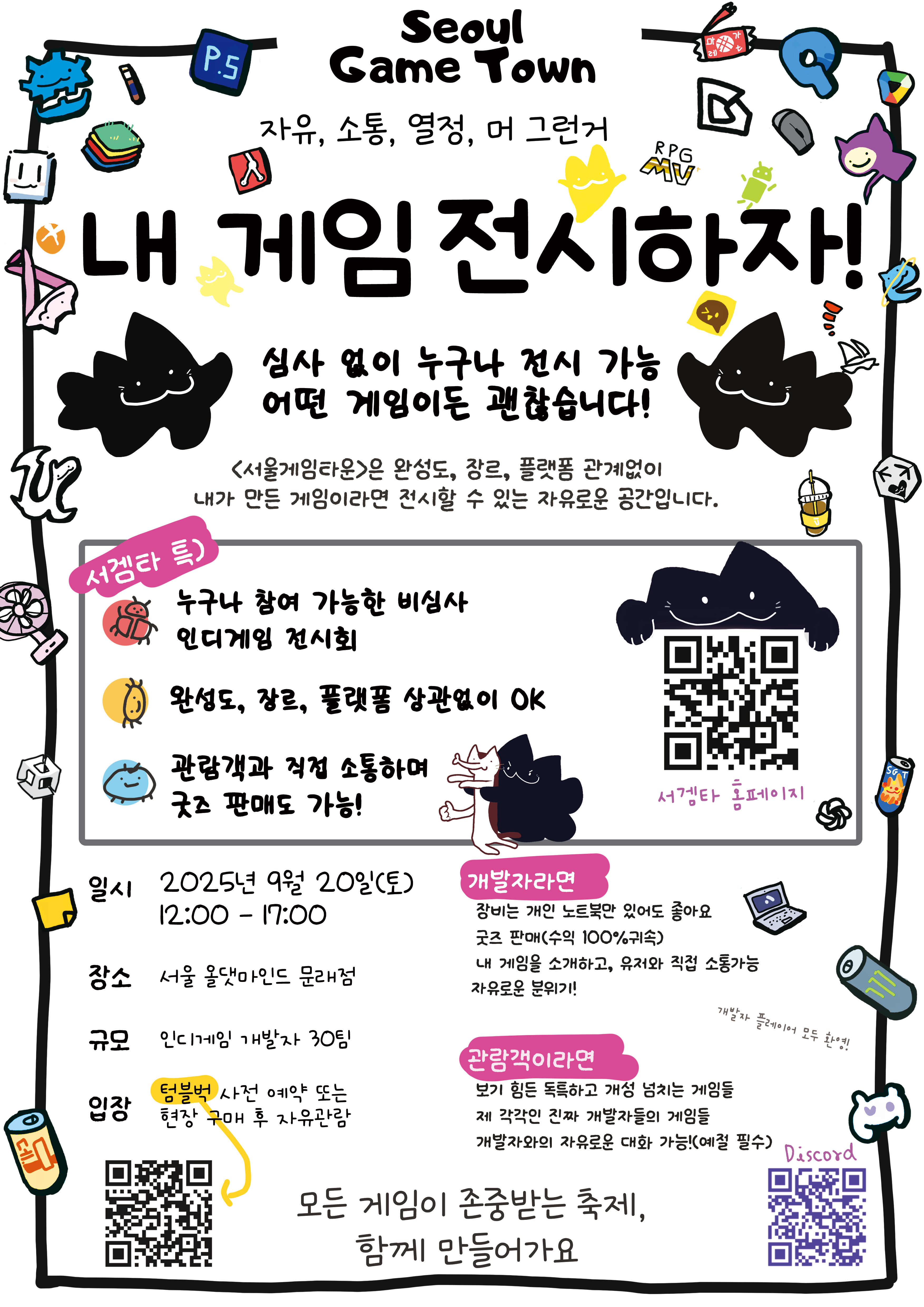 기존 전시회(2025 PlayX4 인디 오락실, 2024 BIC 등)의 낙선율(70%) 에 좌절했던 개발자라면, 이곳에서 자유롭게 작품을 전시하고 교류할 수 있습니다. 개발자와 유저가 서로의 아이디어를 나누고 성장하는 공간으로, 게임을 사랑하는 모든 이들이 주인공이 됩니다.