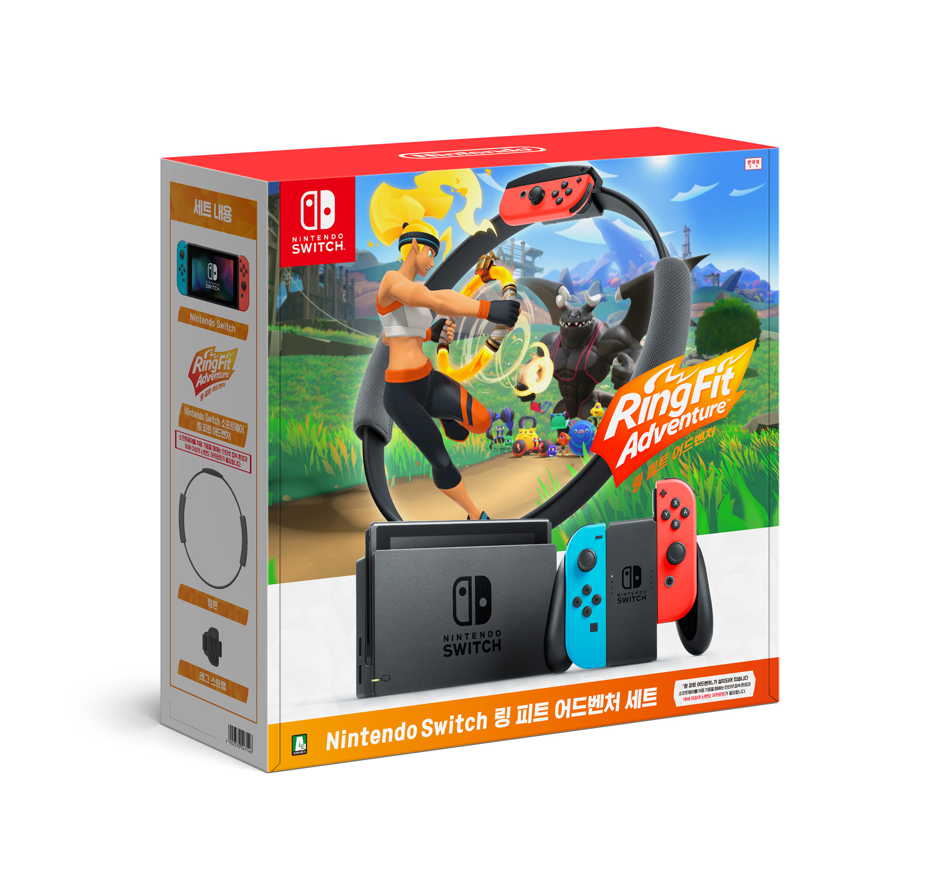 'Nintendo Switch 링 피트 어드벤처 세트' 에는 네온 블루/네온 레드 컬러의 Nintendo Switch 본체와 '링콘', '레그 스트랩'이 포함되어 있다. 또한, 본체에 '링 피트 어드벤처(다운로드 버전)' 가 설치되어 있어 닌텐도 어카운트를 연동하면 바로 플레이할 수 있다.