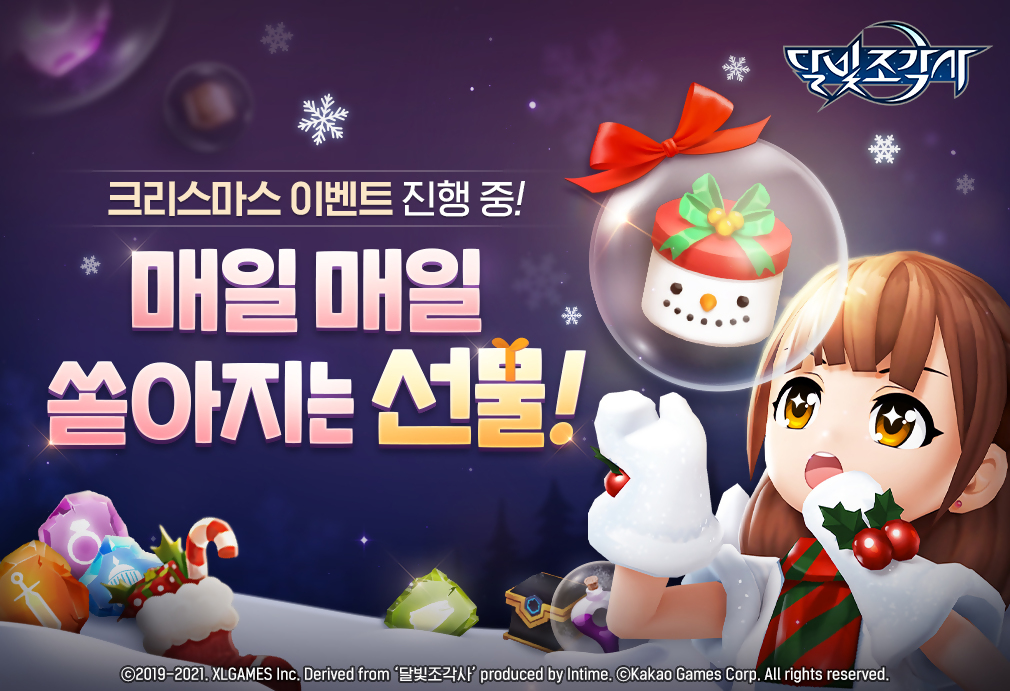 모바일 오픈월드 MMORPG ‘달빛조각사’ 에서는 오는 26일까지 매일 ‘산타클로스의 일일 퀘스트’ 를 완료하는 이용자에게 ‘크리스마스 선물 상자’, ‘크리스마스 양말’ 등 특별한 아이템을 제공하며, 이용자는 미션 수행을 통해 획득한 아이템을 ‘꾸밈옷’, ‘황혼의 마수정’ 등 다양한 이벤트 아이템으로 교환해 게임을 즐길 수 있다.