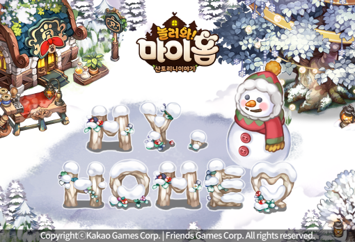 소셜 네트워크 게임(SNG) ‘놀러와 마이홈’ 에서는 1월 6일까지 재료를 모아 ‘로빈 작업대’ 에서 눈사람을 제작하고, ‘겨울 버전 알파벳’ 을 수확한 후 미션을 수행하는 이벤트를 진행한다. 또, 21일부터 튜토리얼을 완료한 이용자를 대상으로 크리스마스 퀘스트 수행 시 귀여운 ‘토찌’ 이모티콘을 지급한다.