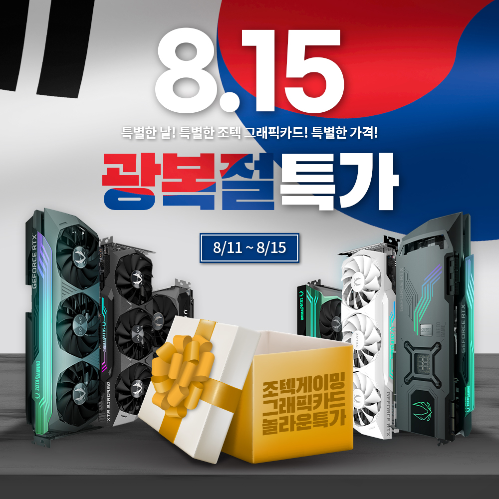 지포스 그래픽카드 전문 기업 조텍코리아(ZOTAC Korea, 대표이사 김성표) 는 조텍코리아 공식 쇼핑몰 ‘탁탁몰( http://www.tagtag.co.kr )’ 에서 광복절을 맞이해 특별 특가 행사를 진행한다.