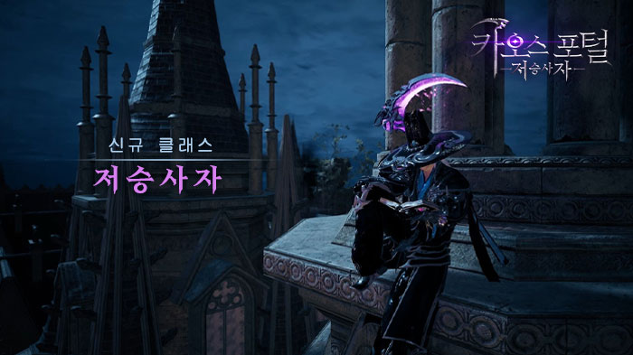영상에서 저승사자가 낫을 휘두르고 카오스 몬스터와 싸우는 짜릿한 장면을 확인할 수 있다. 저승사자 클래스는 총 6개의 액티브 스킬이 있다. 전투에서 ‘명신강림’, ‘망령심판’ 등 다양한 스킬을 활용하여 적군을 처치하면서 유저는 대전 승리의 재미는 물론이고, 화려한 스킬 이펙트로 시각적인 즐거움도 실감할 수 있다.
